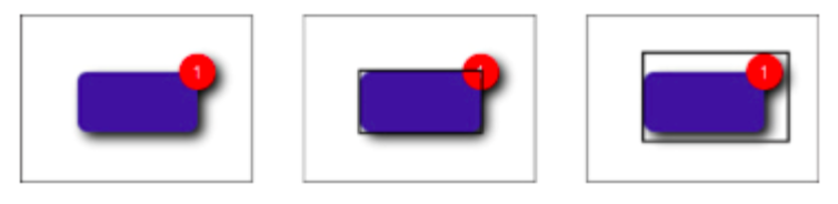 As developers create complex views, they may introduce visual ornamentation such as shadows, exterior highlights, reflections, and engraving lines. As they do, these features are often drawn onto p_w_picpath art rather than being added through layers or subviews. Unlike frames, a view’s alignment rectangle should be limited to a core visual element. Its size should remain unaffected as new items are drawn onto the view. Consider the left side of Figure 1-11. It shows a view drawn with a shadow and a badge. When laying out this view, you want Auto Layout to focus on aligning just the core element—the blue rectangle—and not the ornamentation.