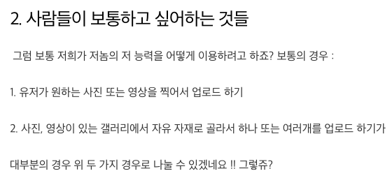 ์๋ฅผ ๋ค์ด, ์ ํฌ๋ธ, ํฑํก ๋น์ทํ๊ฒ ์์์ ์ฌ๋ ค์ผํ๋ ์ฑ์ด๋ฉด, ํฝ์ปค์์ ์ค์ง ๋์์ ๋ฏธ๋์ด ํ์ ๋ง ํ์ฉํด์ผ๊ฒ ์ฃ .