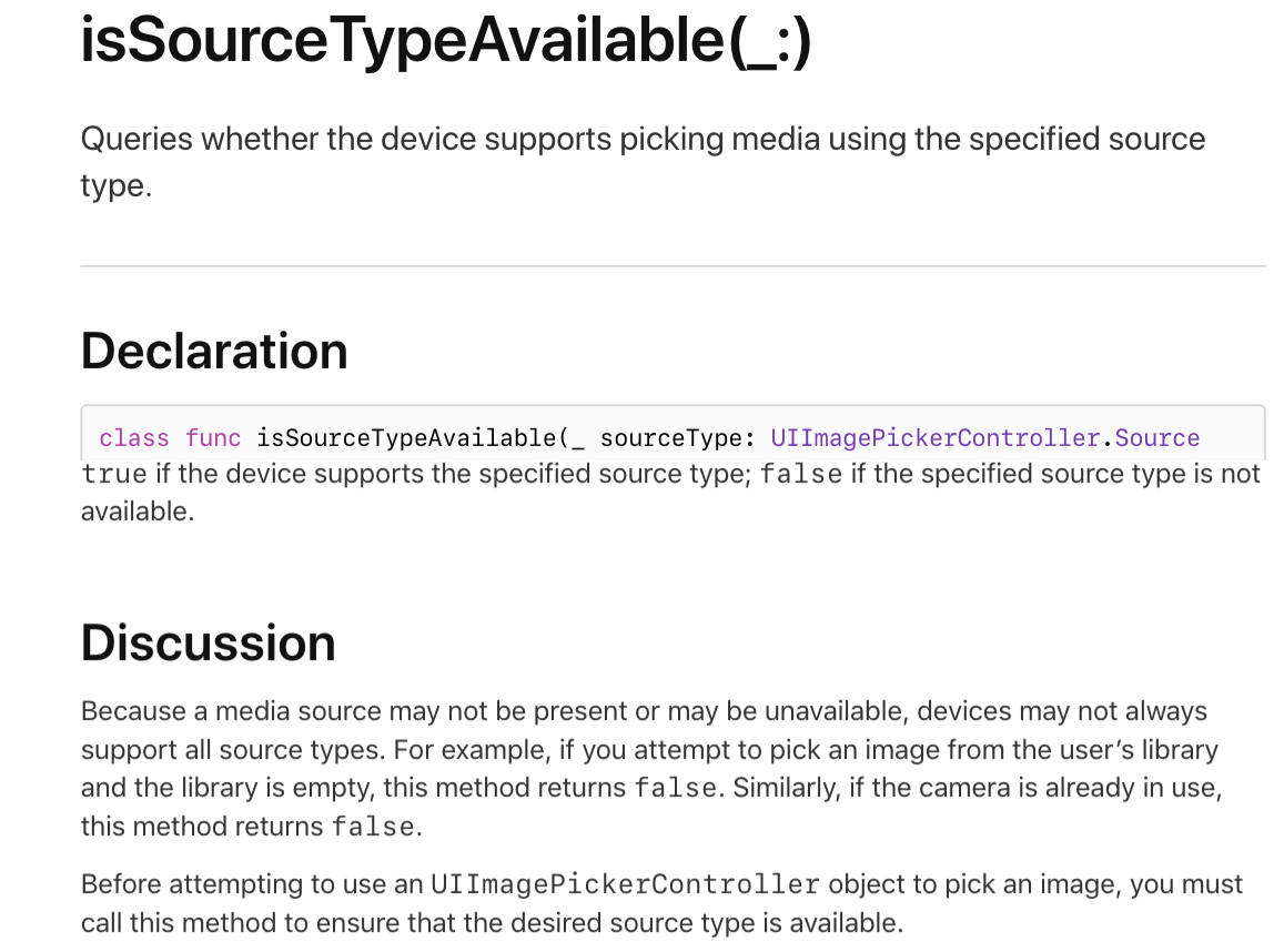 if UIImagePickerController.isSourceTypeAvailable(.camera){