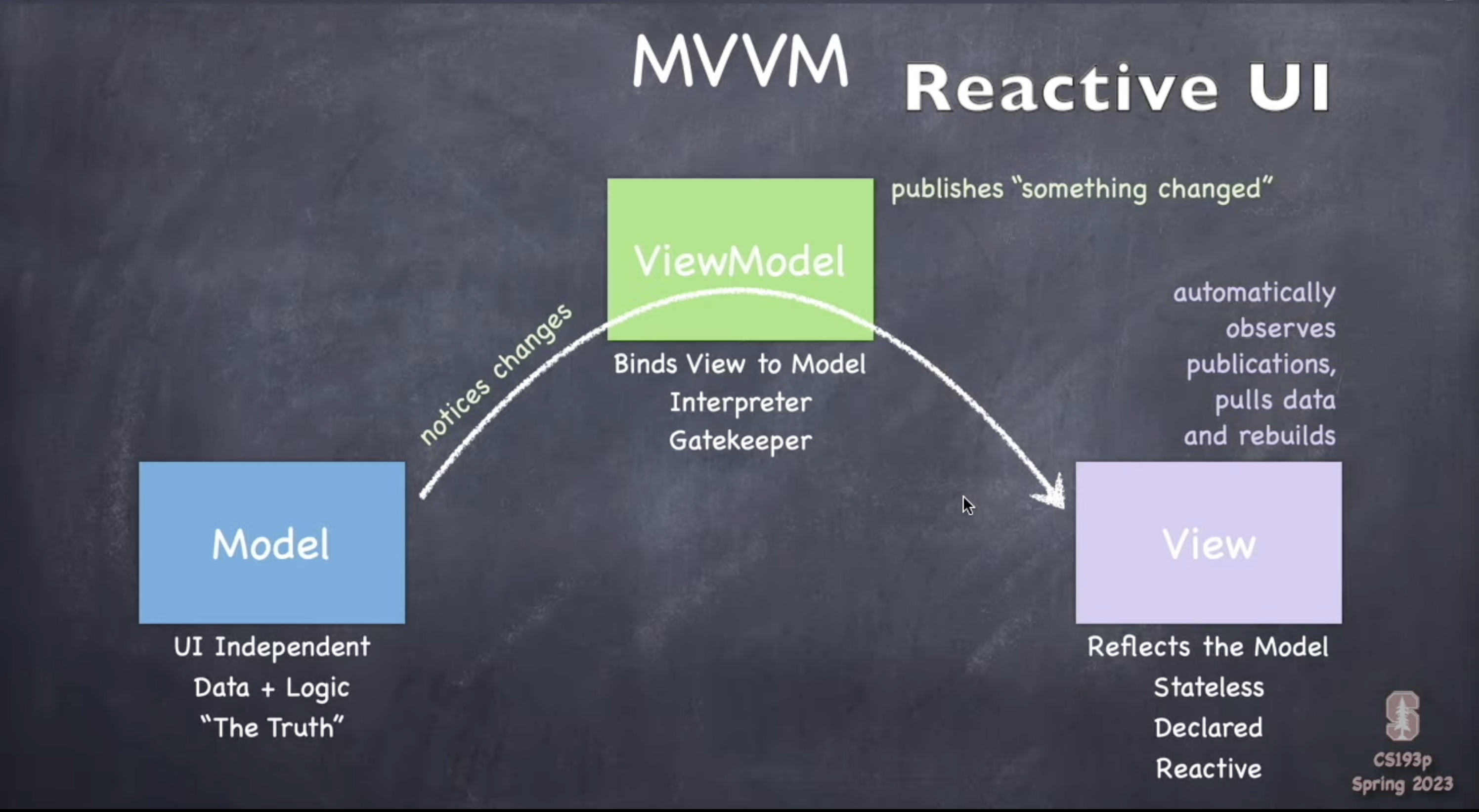 - ObservableObject protocol : ViewModel conform to this, by which, it can automatically call 'objectWillChange.send()' without a explicit code, after its @Published-marked struct has changed.