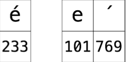 ์๋ฅผ ๋ค์ด, ์์์ ์ฒซ ๋ฒ์งธ ์์์ ๋ ๋ฒ์งธ ์์ ์ ๋์ฝ๋ ์ ์ฝ๋ ํฌ์ธํธ ๊ฐฏ์๋ 4๊ฐ์ 5๊ฐ๋ก ์์ดํ๋, ์ค์ํํธ๋ ์์ด ์ํ๋ฒณ e์ ๋ฐ์๊ธฐํธ๋ฅผ ํด๋ฌ์คํฐ๋ก ๋ฌถ์ด ํ๋์ ์บ๋ฆญํฐ๋ก ๋ด ๋๋ค.